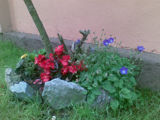 Kwiatek przy domu obok kościoła w Sianowie