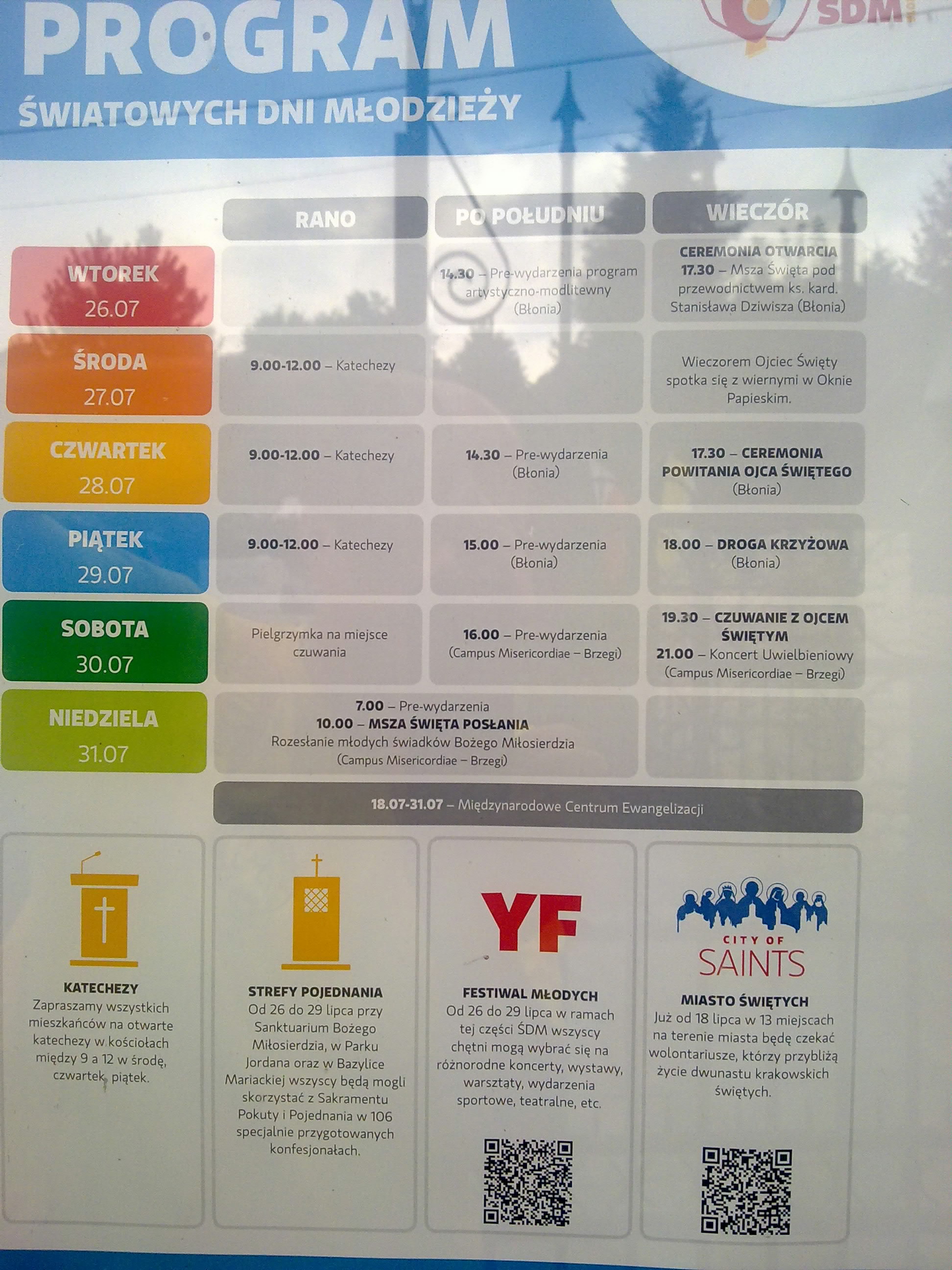 Program ŚDM wywieszony przy kościele Narodzenia Jana Chrzciciela w Korzkwi (w broszurze było zbyt mało informacji)