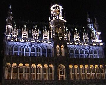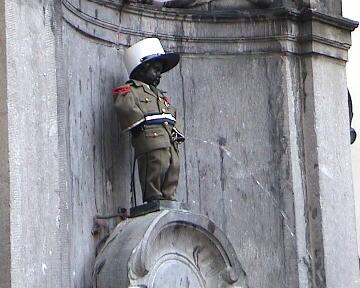 Maneken was dressed in the uniform on that day. The City Hall in the night, during the sound/light show.