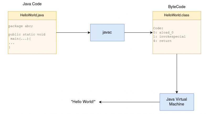 javacz kodu źródłowego Java - kod bajtowy jest niezależny od platformy i może być uruchamiany na dowolnej maszynie wirtualnej (JVM)