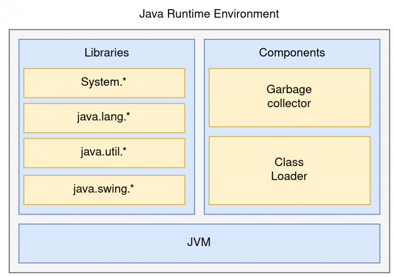 - JRE (Java Runtime Environment) - środowisko uruchomieniowe, które zawiera JVM oraz biblioteki klas potrzebne do uruchamiania aplikacji Java