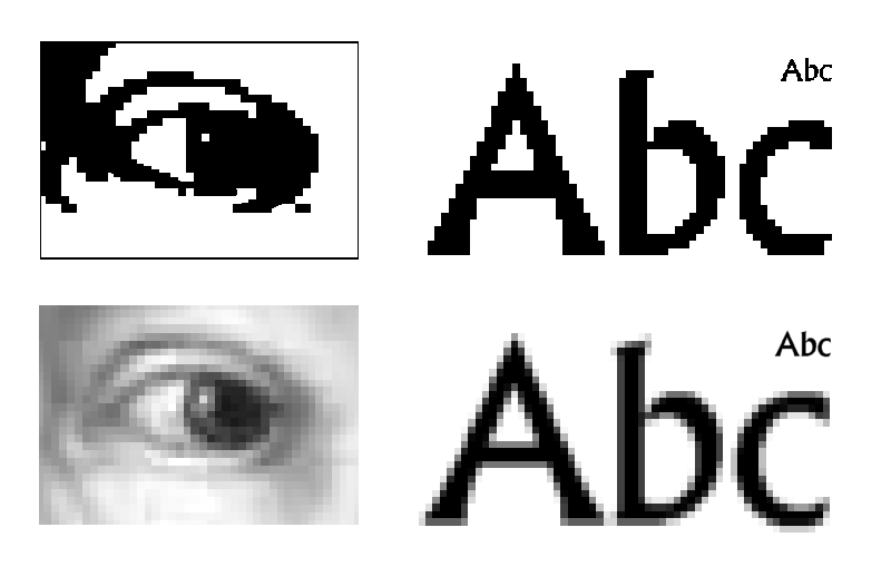Obraz grayscale pozwala na miekka reprezentacje linii. Bywa uzyteczny nie tylko w zastosowaniu do obrazow "fotograficznych", ale rowniez do jakosciowo lepszej reprezentacji np. liternictwa.