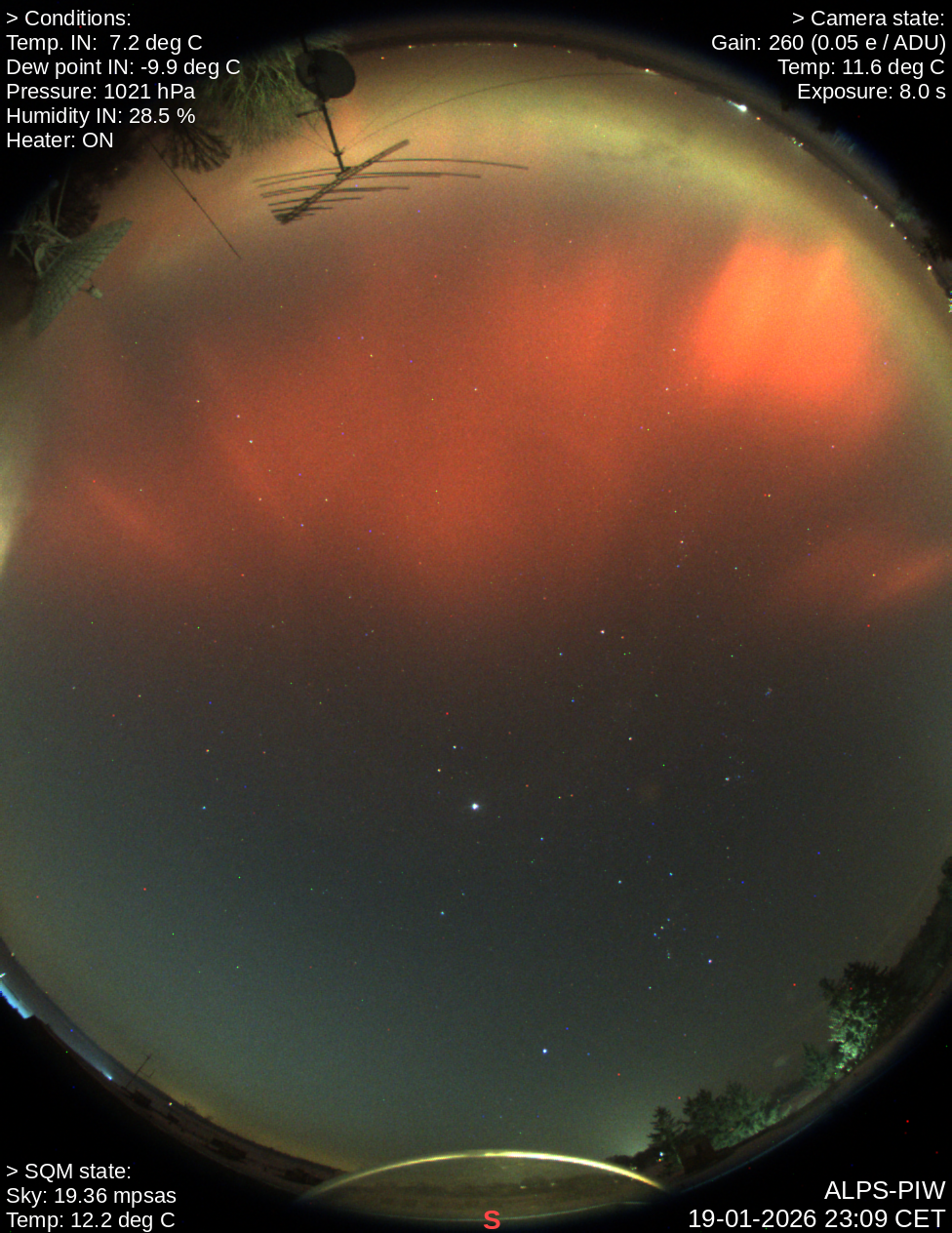 The main goal of all ALPS stations is to monitor the local sky to estimate the degree of artificial light pollution. However, they can also detect various phenomena, from the passage of space satellites in Earth orbit and fuel drops from the Falcon rocket (https://portal.umk.pl/pl/article/spiralny-wzor-na-nocnym-niebie) to the natural and magnificent auroras and meteor and fireball trails. And on a clear night, you can admire the Milky Way - our Galaxy.