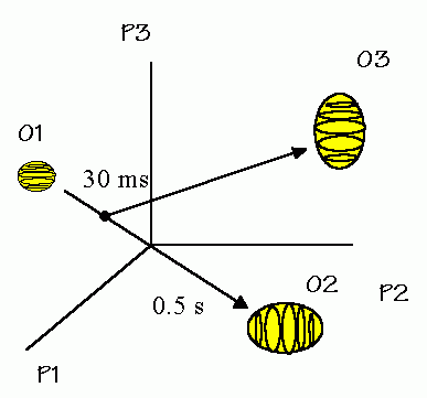 Zanim dojdzie do pobudzenia (aktualizacji) O2 nowy bodziec zmienia trajektorię, która kończy się w O3.